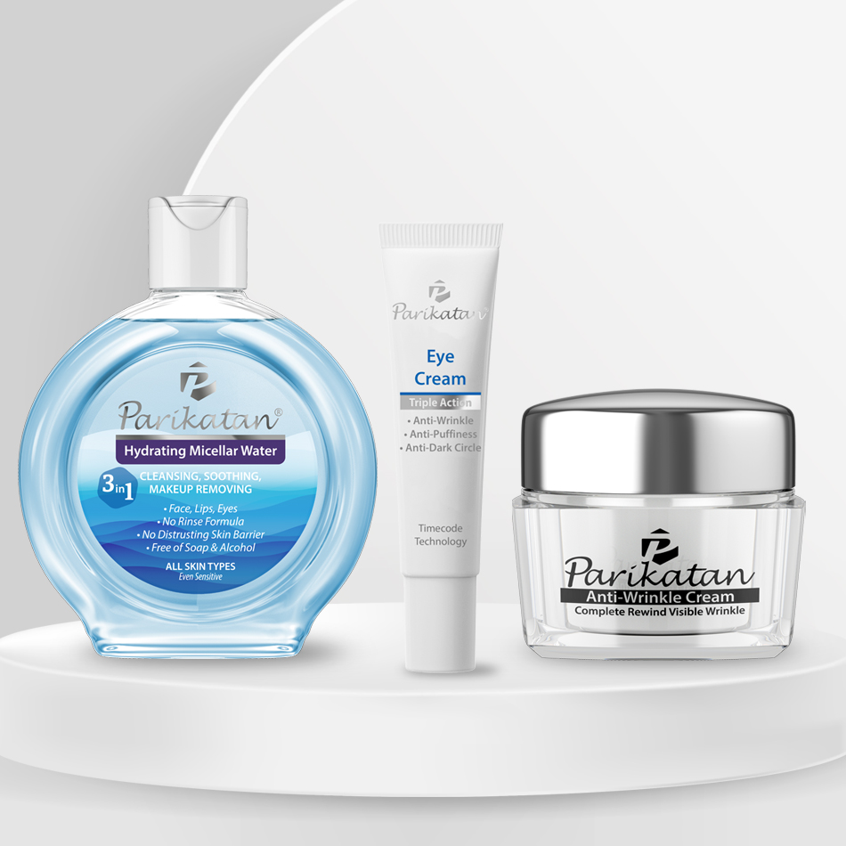 پکیج جوان سازی پوست پریکاتن شامل کرم ضد چروک بسیار قوی صورت پریکاتن و سرم روشن کننده پوست پریکاتن است